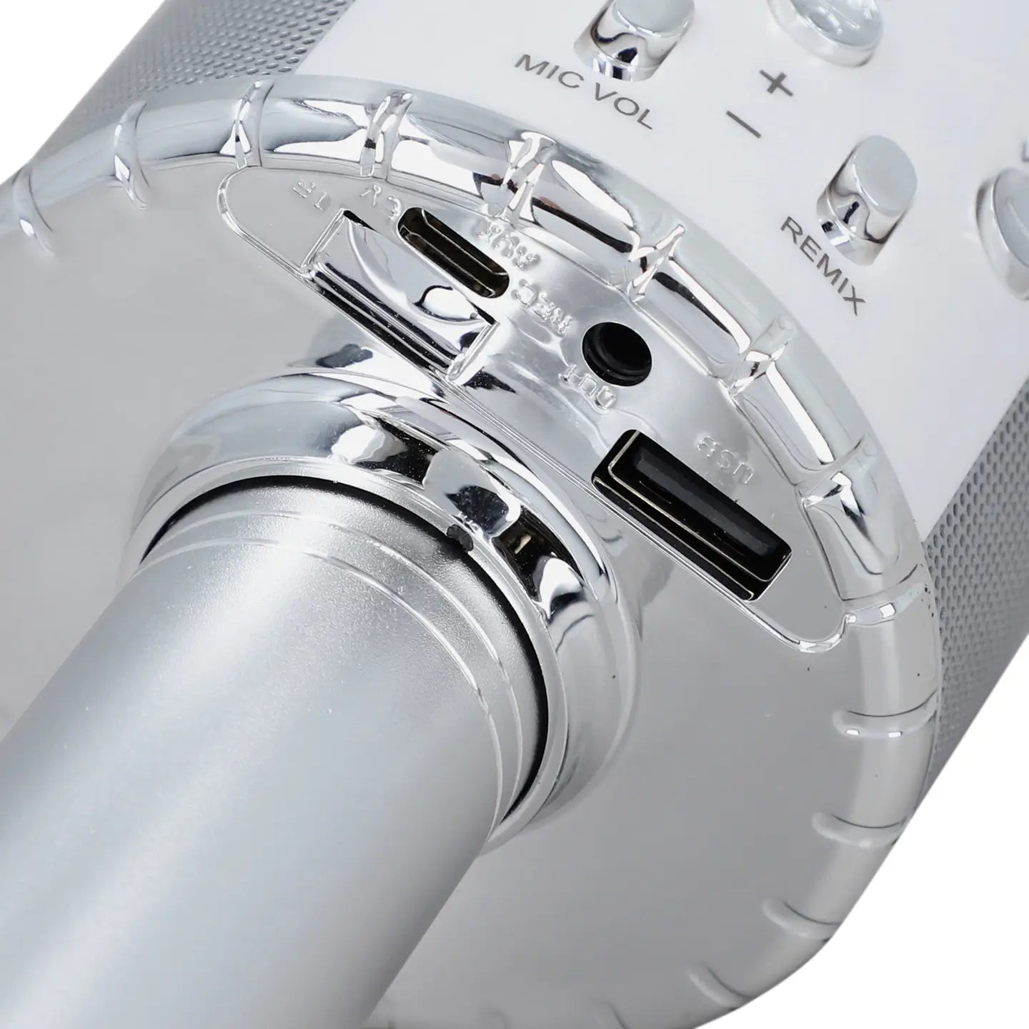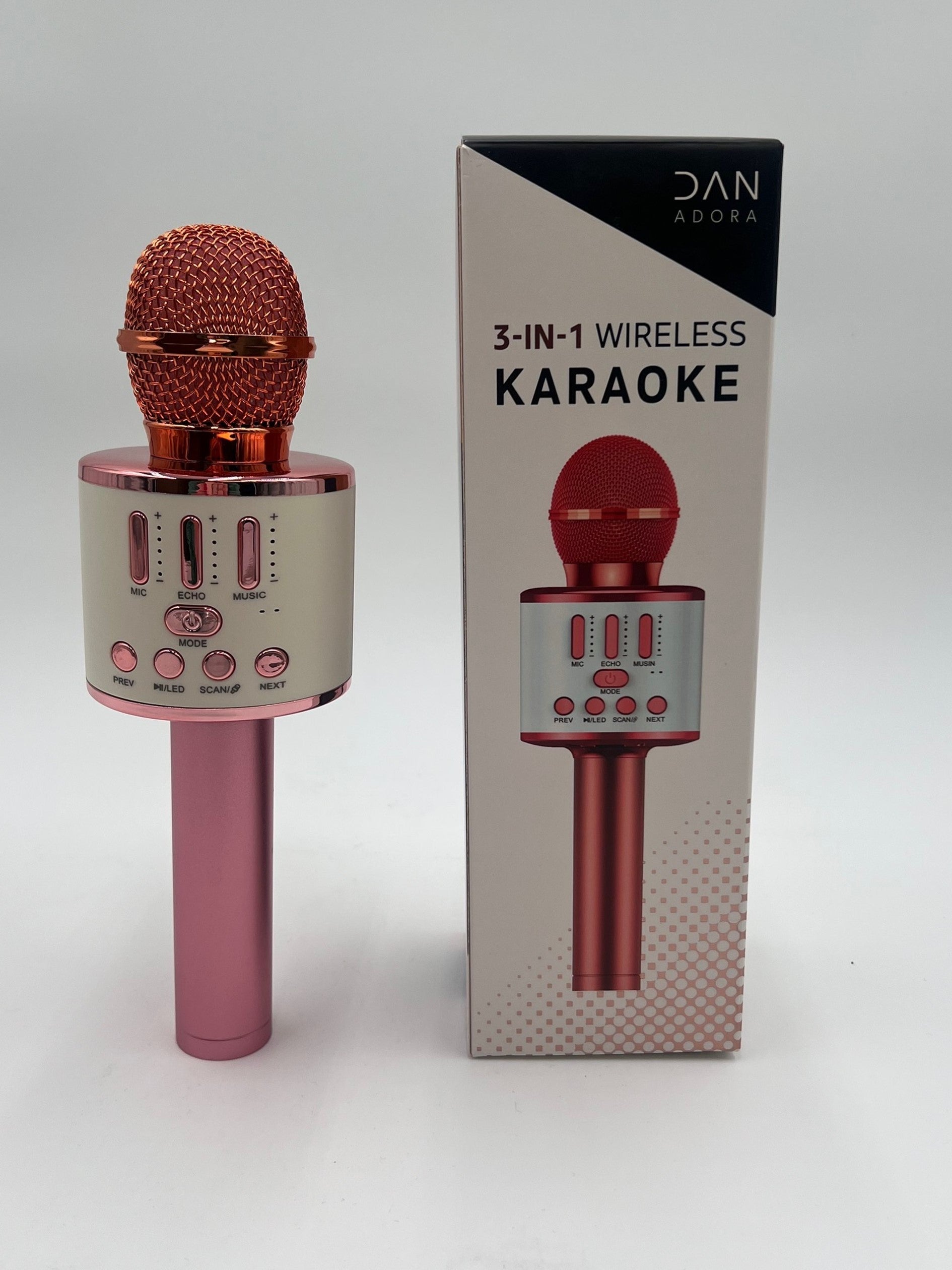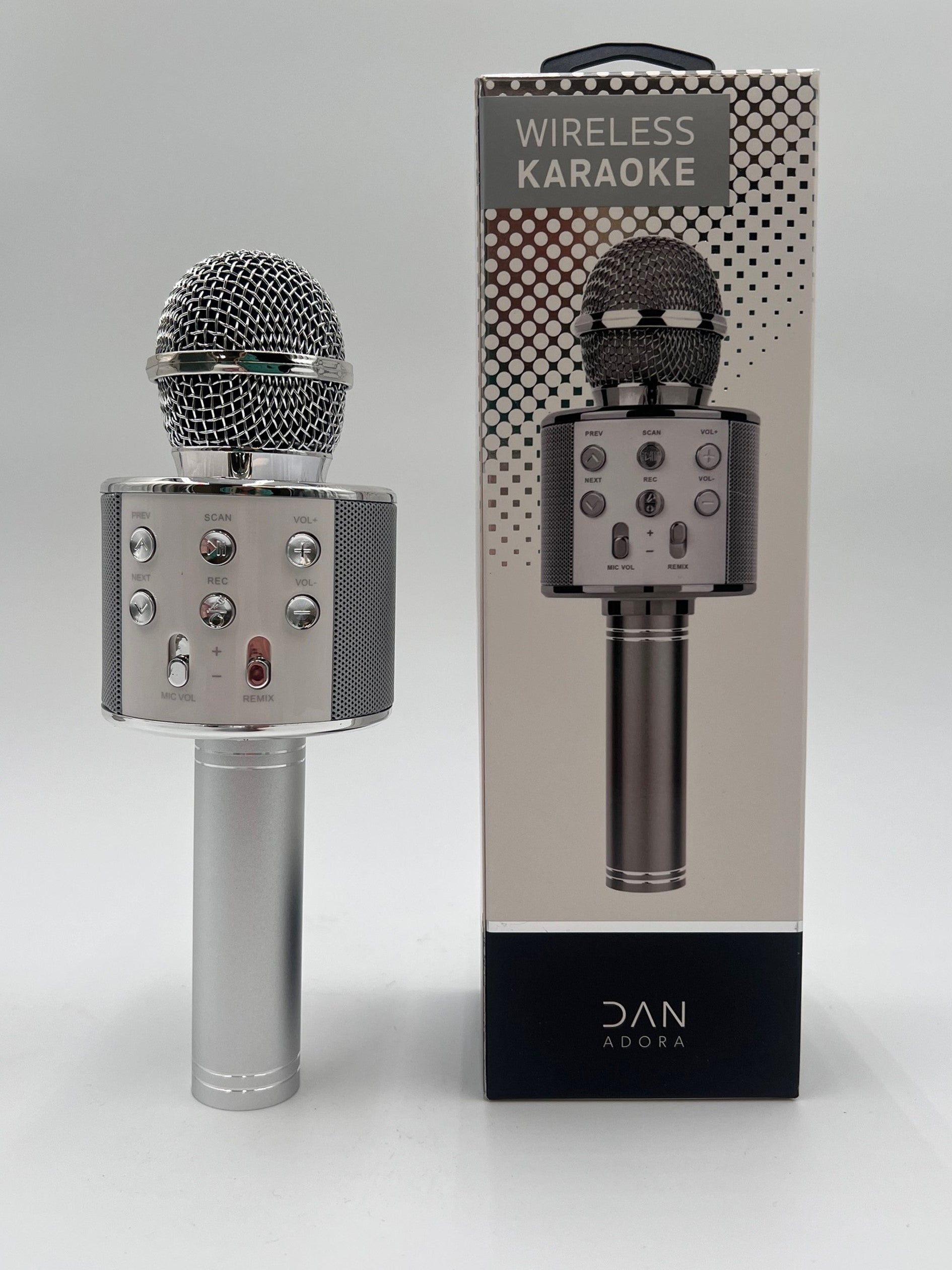 Unleash your inner superstar with this all in one LED Wireless Karaoke Microphone! This innovative gift features a microphone that amplifies your voice & it doubles as a Bluetooth speaker. Featuring high sound quality with noise reduction, LED lights and a micro- USB charging port & Aux connection. Available in two colors, silver and rose gold.